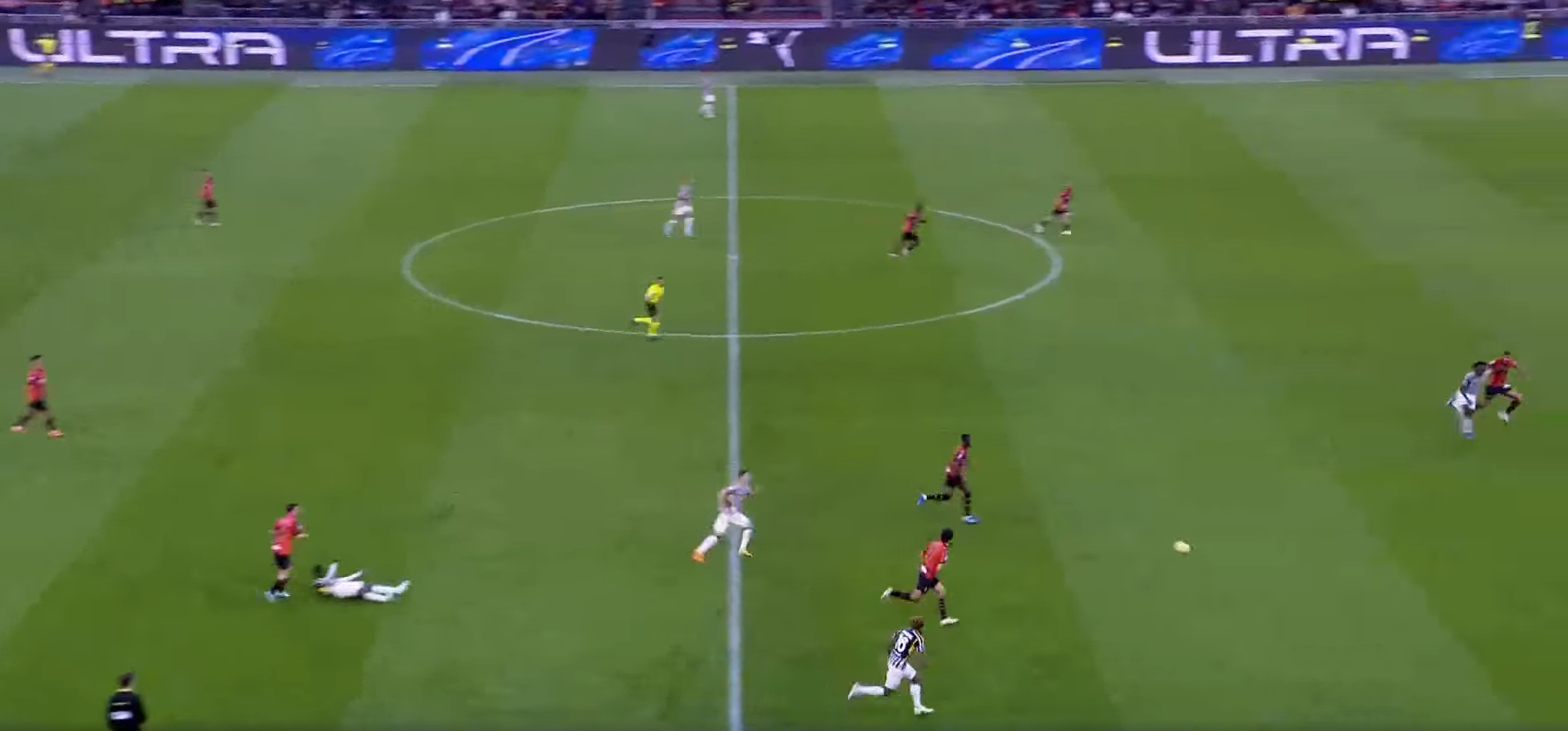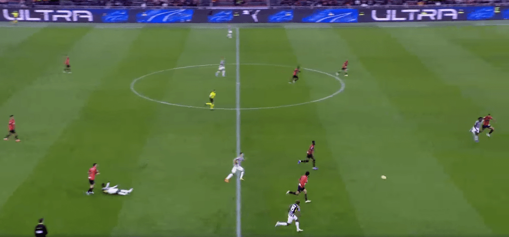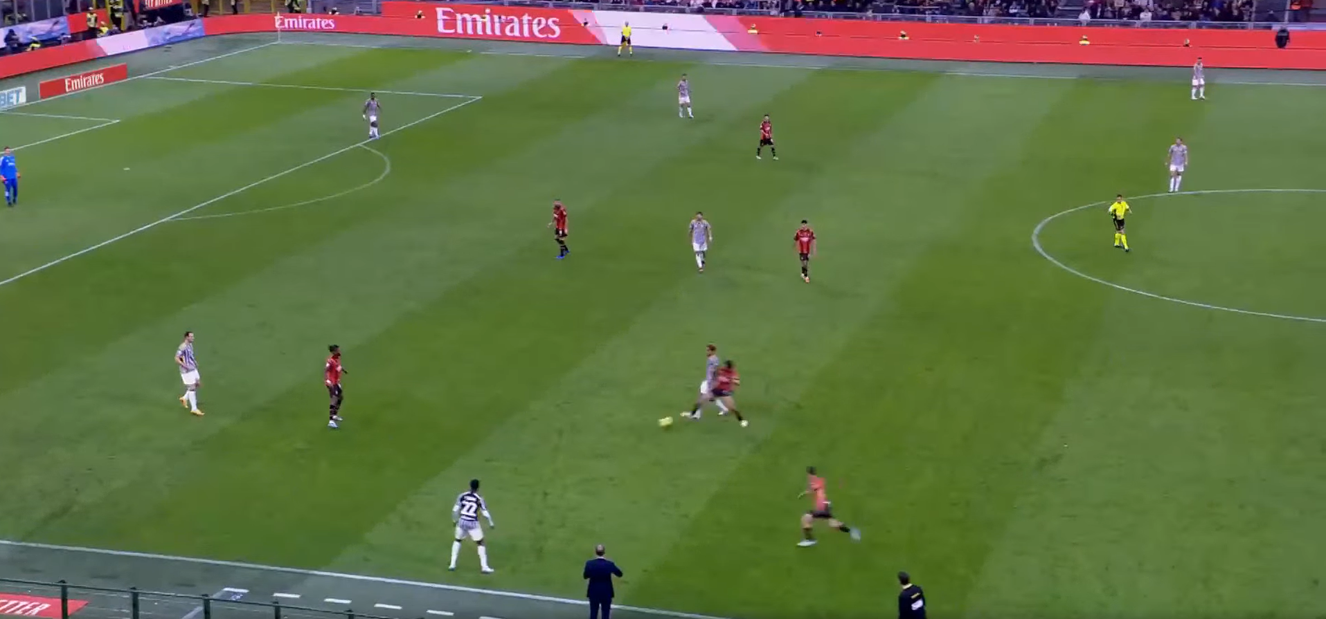 Nella gara contro la Juve spesse volte si è visto McKennie allargarsi buttandosi in avanti e costringendo Florenzi a dover scambiare l’uomo con Adli che doveva scalare su Weah. Questo avveniva proprio perchè Allegri, che tatticamente è uno degli allenatori migliori del campionato, sapeva che così facendo avrebbe svuotato la zona centrale lanciando poi sulle punte in 1vs1 senza copertura in aiuto. Parliamo comunque di dettagli che vanno corretti, non di gravissimi problemi di difficile correzione.
