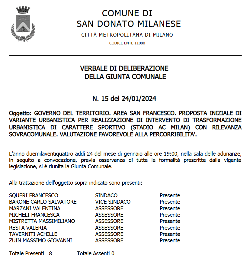 Qua la delibera del Comune di San Donato che come si può vedere è stata fatta nella giornata di ieri, 24/01/2024 mentre oggi è avvenuta la conferenza stampa.