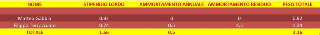 Come si può notare dalle tabelle, il peso totale dei due acquisti è di 2,16 milioni a bilancio. Le cessioni generano 4,6 milioni di plusvalenze e un risparmio tra ammortamenti annuali e stipendi per 1,97 milioni quindi circa 6,6 milioni. I prestiti fanno risparmiare 800 mila euro. Quindi nei fatti il Milan ha un impatto positivo per 7,4 milioni circa tra risparmi e plusvalenze e un impatto di costi inseriti di 2,16.