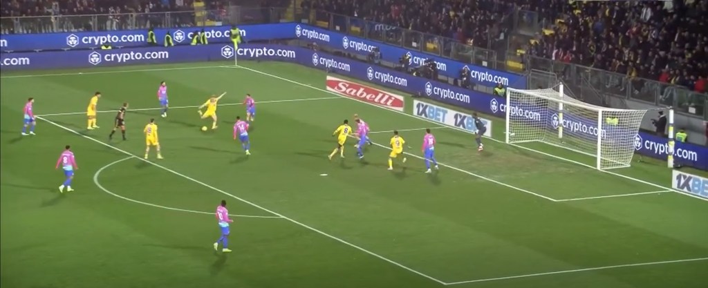 Difensivamente per caratteristiche fisiche del Frosinone, si è riusciti a fare una gara migliore rispetto alle precedenti, ma le caratteristiche dei singoli sono quelle e porteranno sempre ad avere poco filtro. Prendiamo ad esempio questa situazione con Adli protagonista