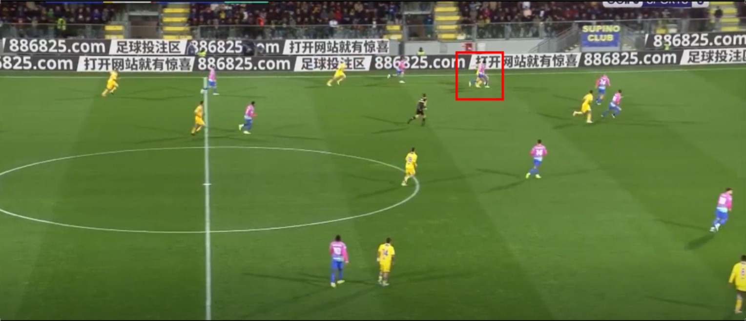 Difensivamente per caratteristiche fisiche del Frosinone, si è riusciti a fare una gara migliore rispetto alle precedenti, ma le caratteristiche dei singoli sono quelle e porteranno sempre ad avere poco filtro. Prendiamo ad esempio questa situazione con Adli protagonista