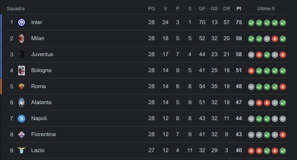 Con la vittoria 1-0 contro l’Empoli e i pareggi di Atalanta e Roma, il vantaggio sul quarto posto sale a 11 punti, una cifra consistente.