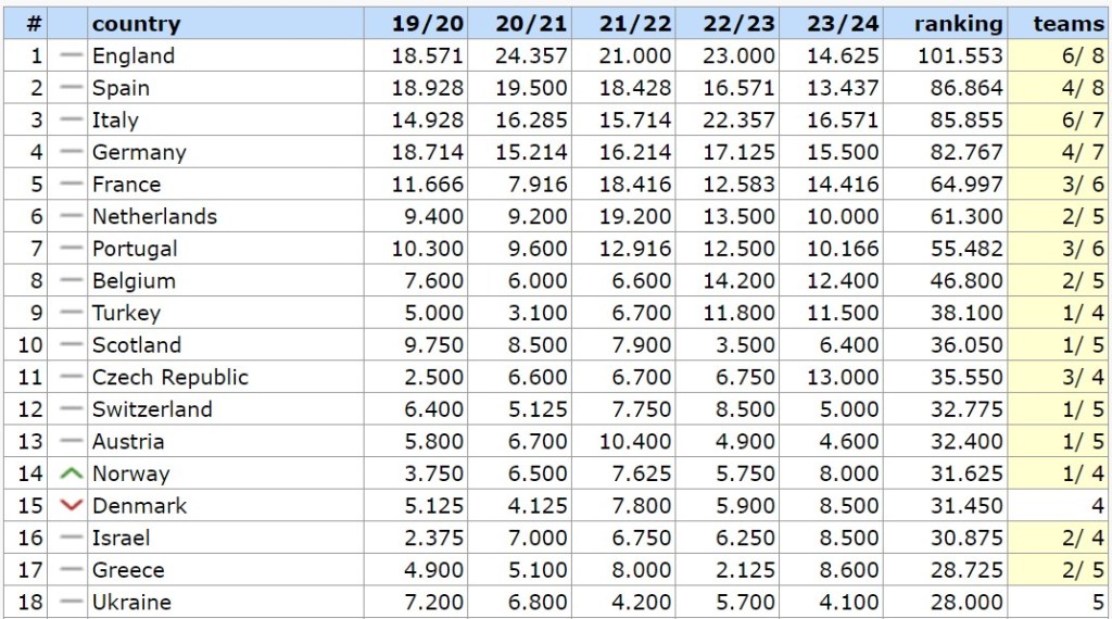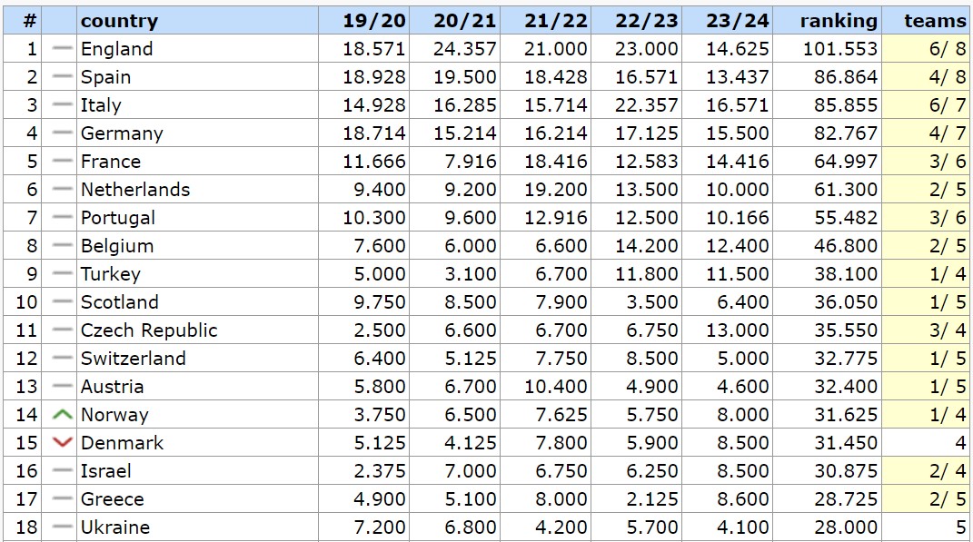 Inoltre non va scordato il ranking europeo che permette alle due nazioni con il ranking annuale più alto di avere il quinto slot in Champions. L’Italia al momento è prima.