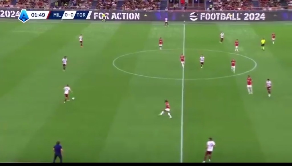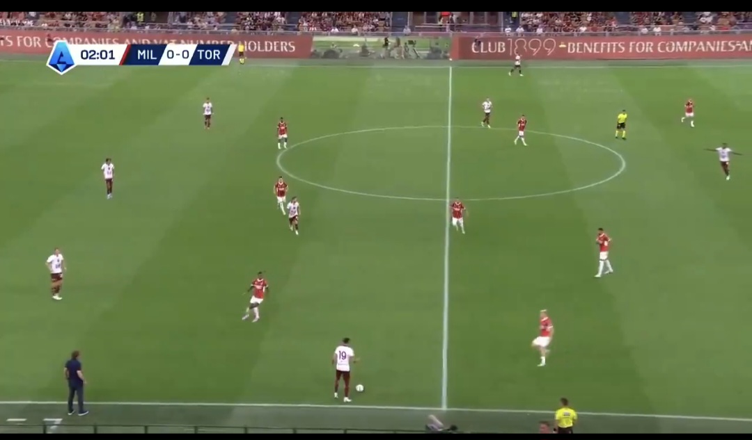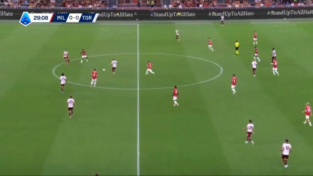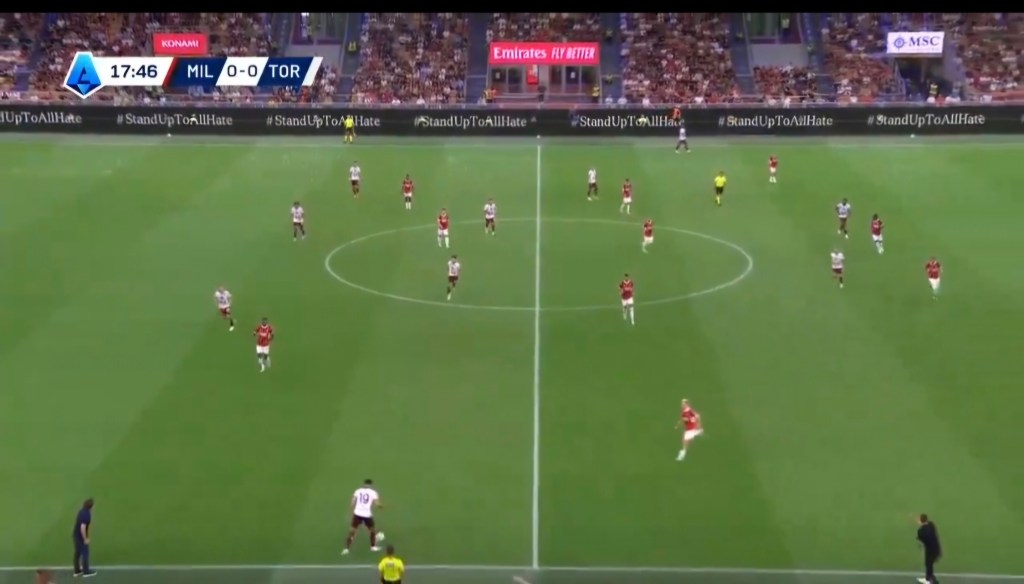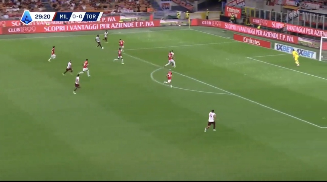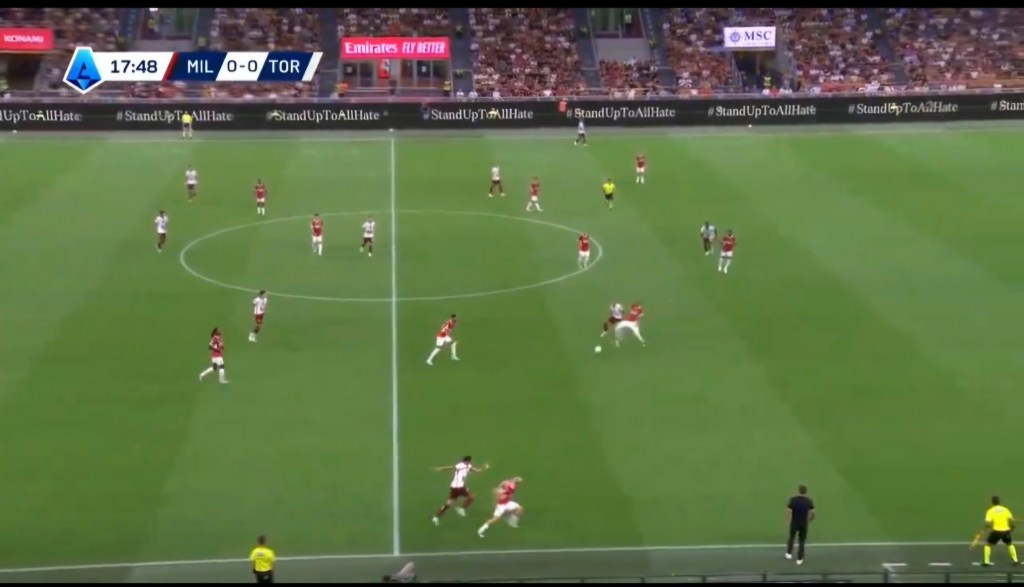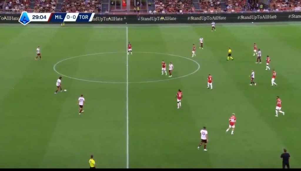 Jovic si fa attrarre dal dc, perde il mediano su cui accorcia Bennacer quando il mediano ha già ricevuto e avuto il tempo della giocata. Successivamente c’è anche un errore dei centrali in ritardo che consentono al Toro di far sviluppare l’azione.