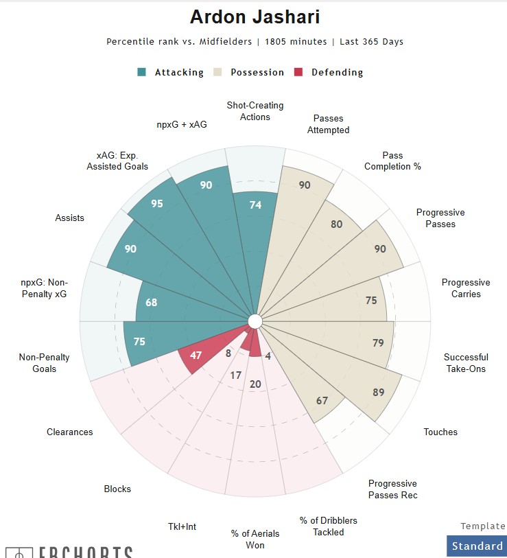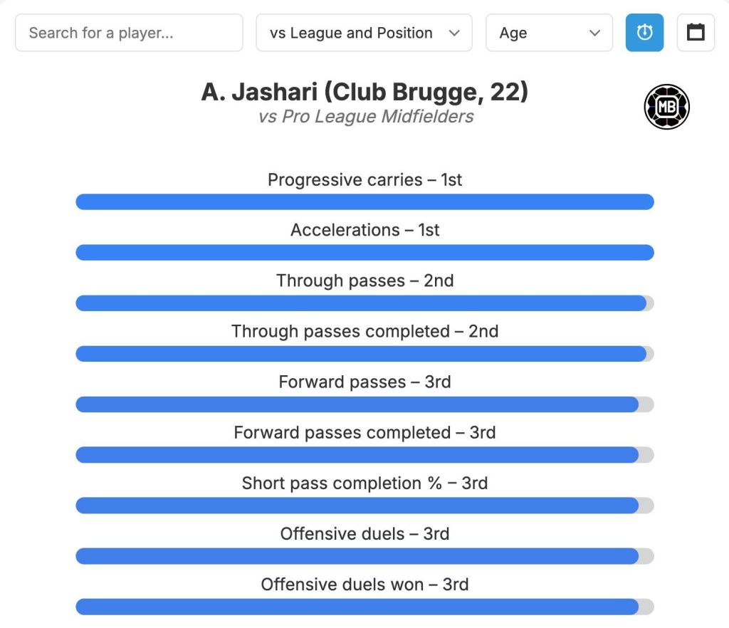 Finalmente è terminata la telenovela di mercato che ci ha accompagnato questa estate. Jashari è un nuovo giocatore rossonero per 34 milioni più 3 di bonus di cui 2 semplici. Una cifra sicuramente importante, ma siamo davanti ad uno dei migliori prospetti a livello europeo nel ruolo. 23 anni, dominante ormai nel campionato belga e pronto a consacrarsi in Italia. Ma che giocatore è? Iniziamo con una panoramica sui dati che ha avuto il giocatore nell’ultima stagione